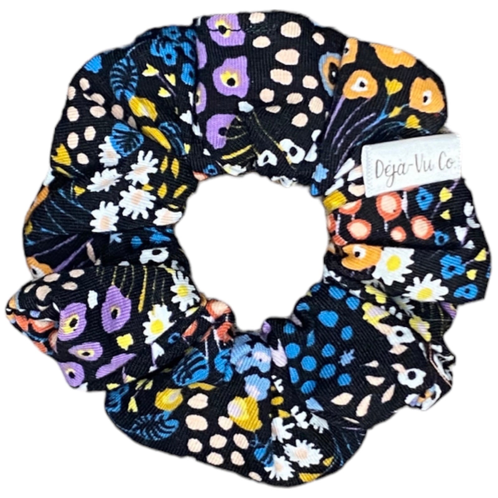 Made with GOTS certified organic cotton, these handmade multicolor floral scrunchies are the perfect accessory for a stylish and environmentally conscious look. The fabric is soft and durable. Add a touch of nature to your hair with these unique and sustainable scrunchies.