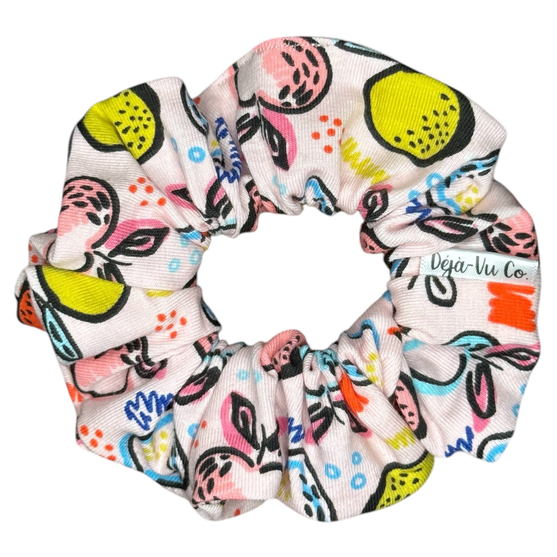 Made with GOTS certified organic cotton, these handmade lemon scrunchies are the perfect accessory for a stylish and environmentally conscious look. The fabric is soft and durable.