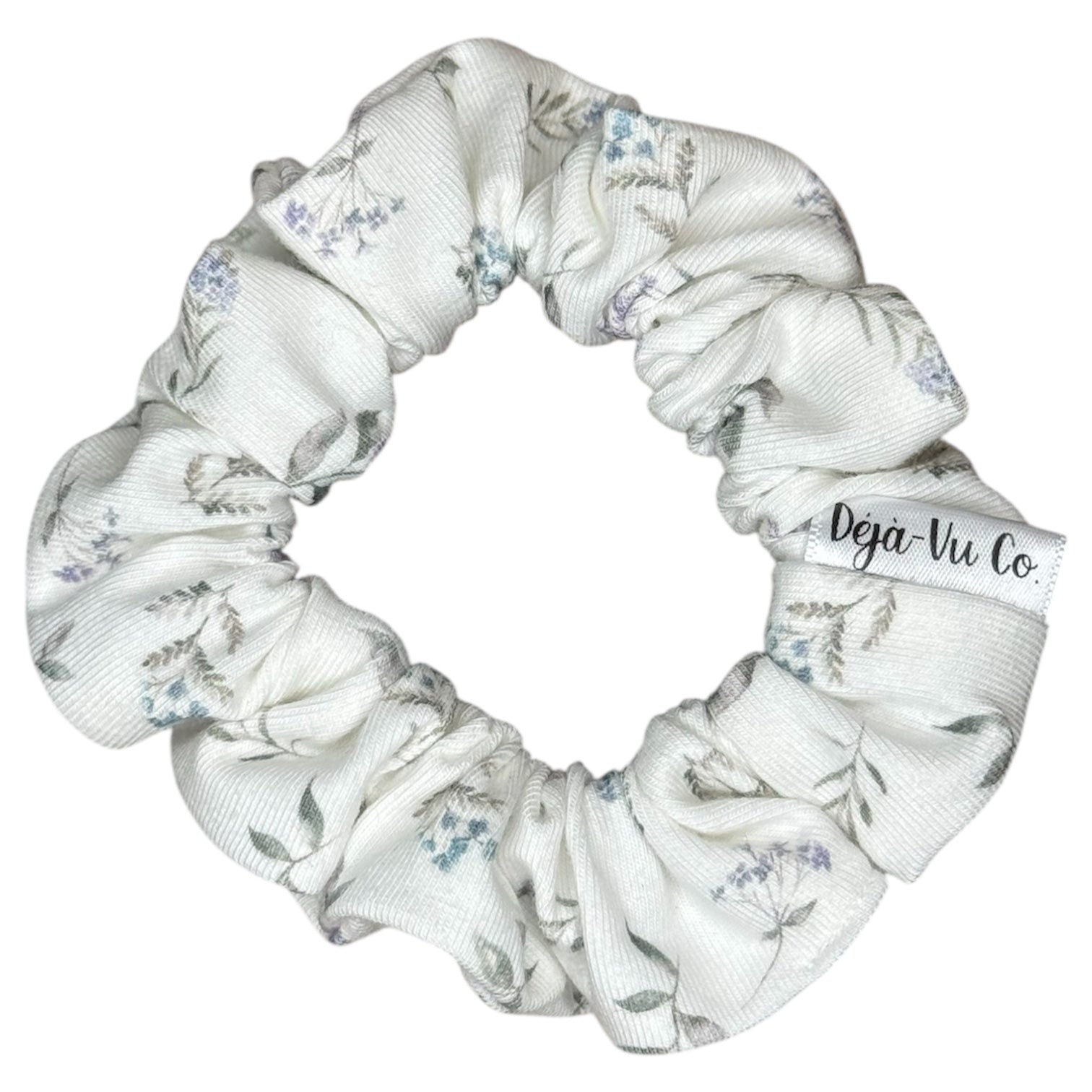 Elevate your hair styling with the Bloom scrunchie, a sophisticated accessory that combines functionality with artistic flair. Featuring a white base adorned with delicate purple and blue floral patterns, this piece seamlessly transitions from everyday wear to special occasions.