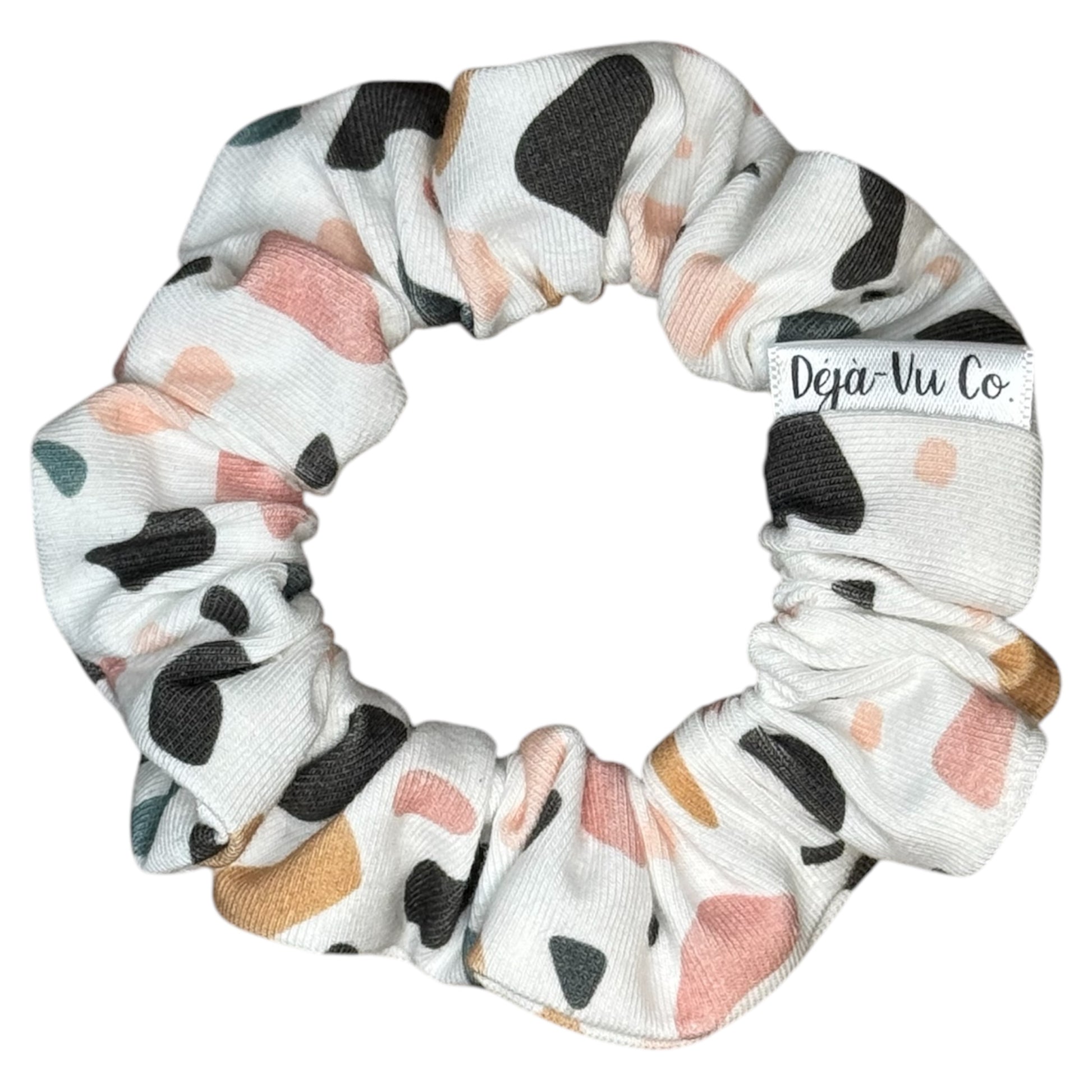 This Terrazzo scrunchie is hand-designed in the Netherlands, showcasing a unique and expertly crafted piece. Made with high-quality materials, this scrunchie adds a touch of sophistication to any hairstyle. Elevate your look with this must-have accessory.
